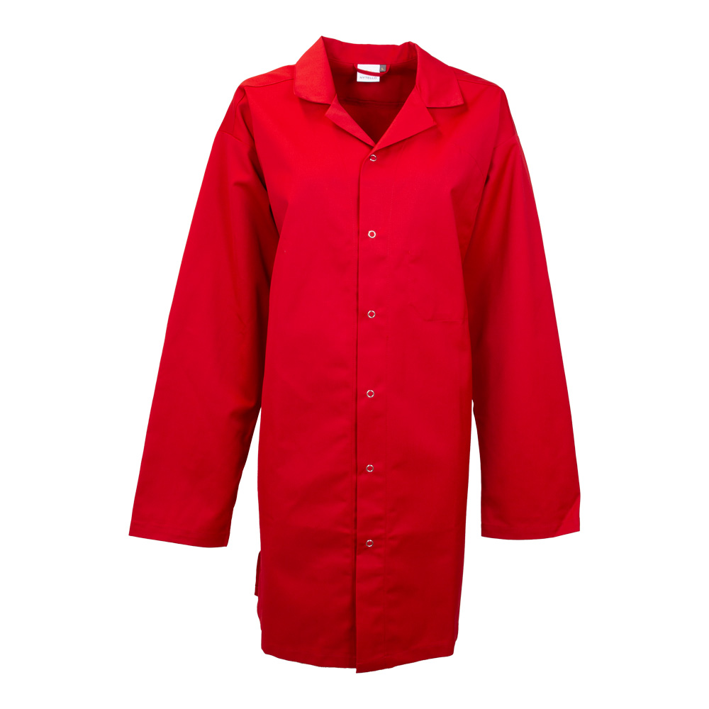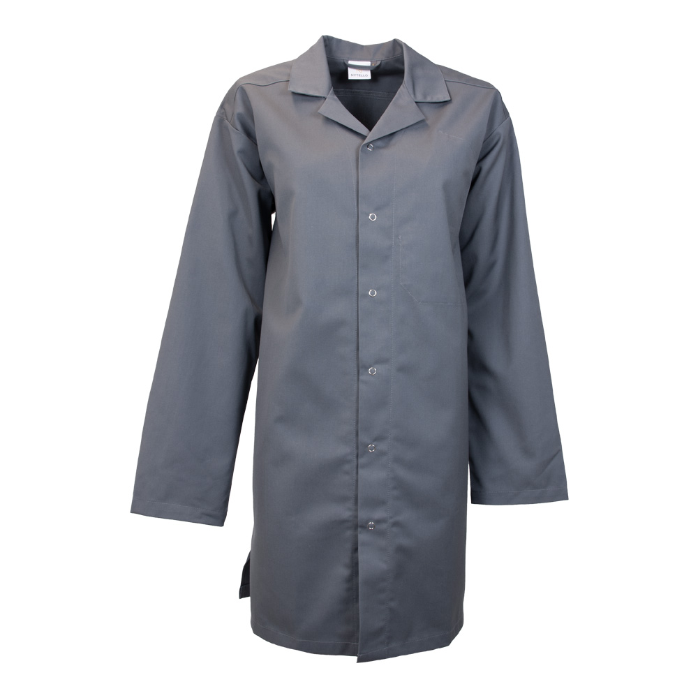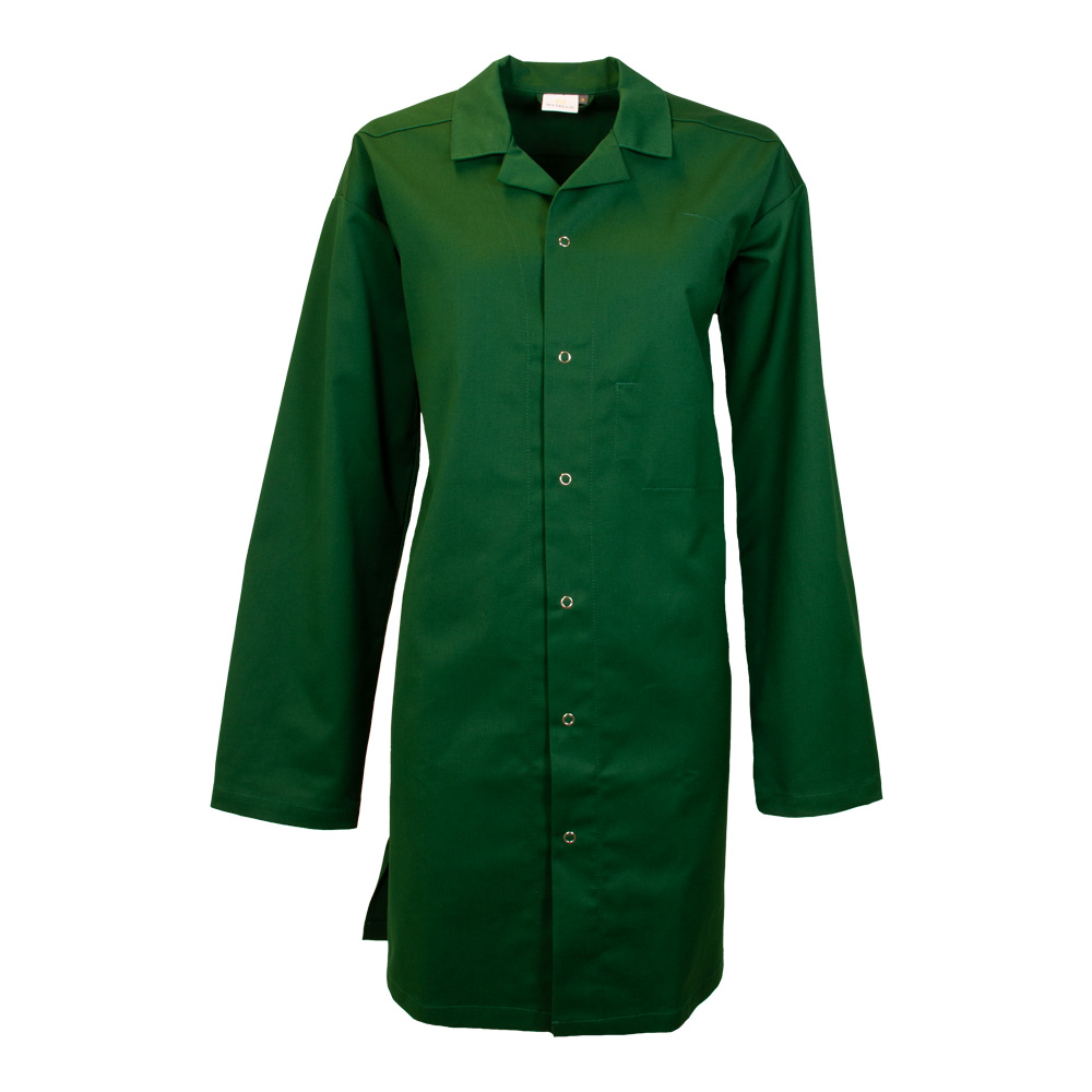 Grocery coat in a long model. Length center back in size M; 91 cm