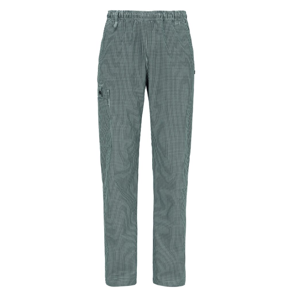 | Kockbyxa med praktiska fickor, utmärkt för dig som jobbar inom livsmedel och service. Byxa med hel resår och dragsko. Benficka med telefonficka som stängs med knapp och tamp. Nyckelhälla höger sida. Justerbart benslut med tryckknappar.